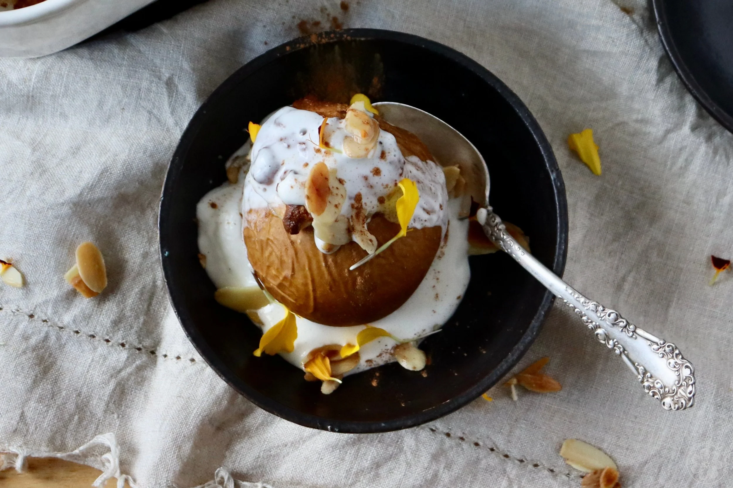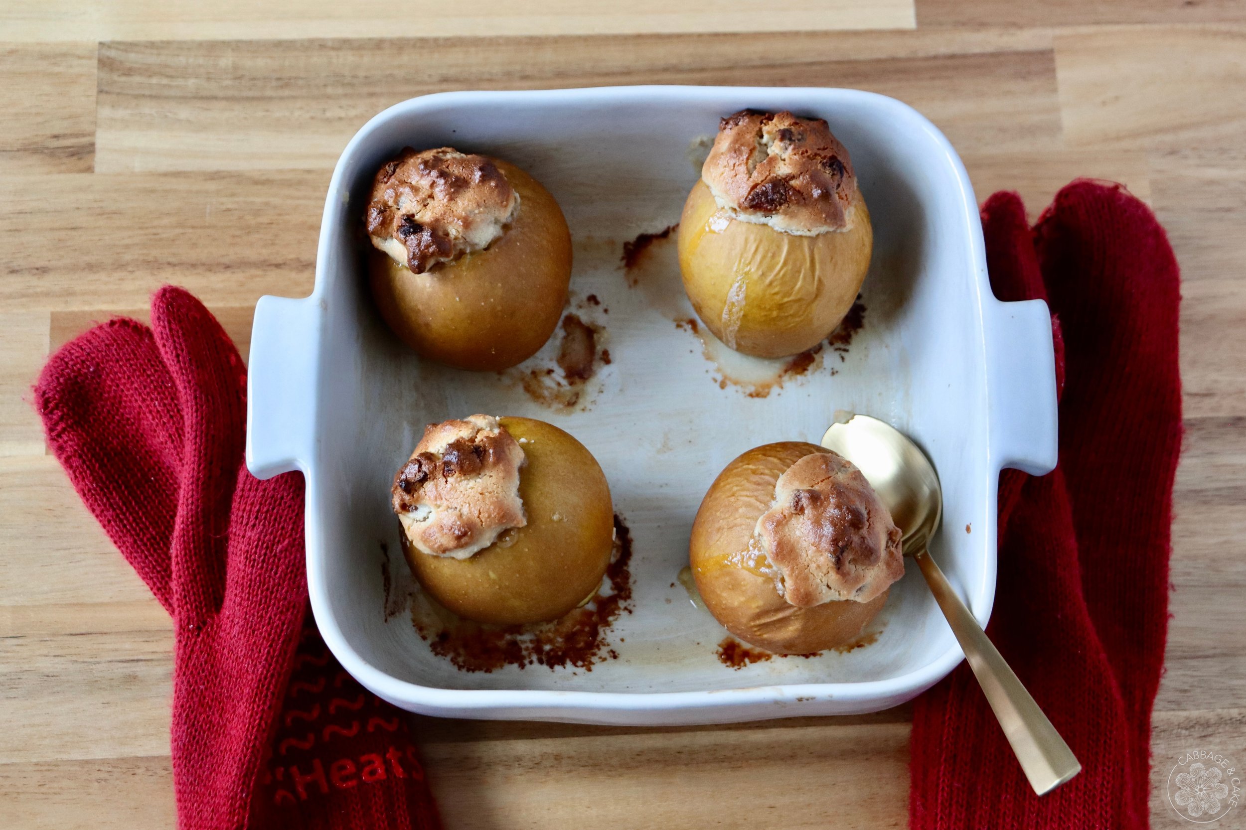 Set the apples in the prepared ovenproof dish and bake for 35- 45 minutes or until soft. Check after 25 minutes, you might want to tent the apples with a piece of tinfoil to prevent the top from getting too dark.