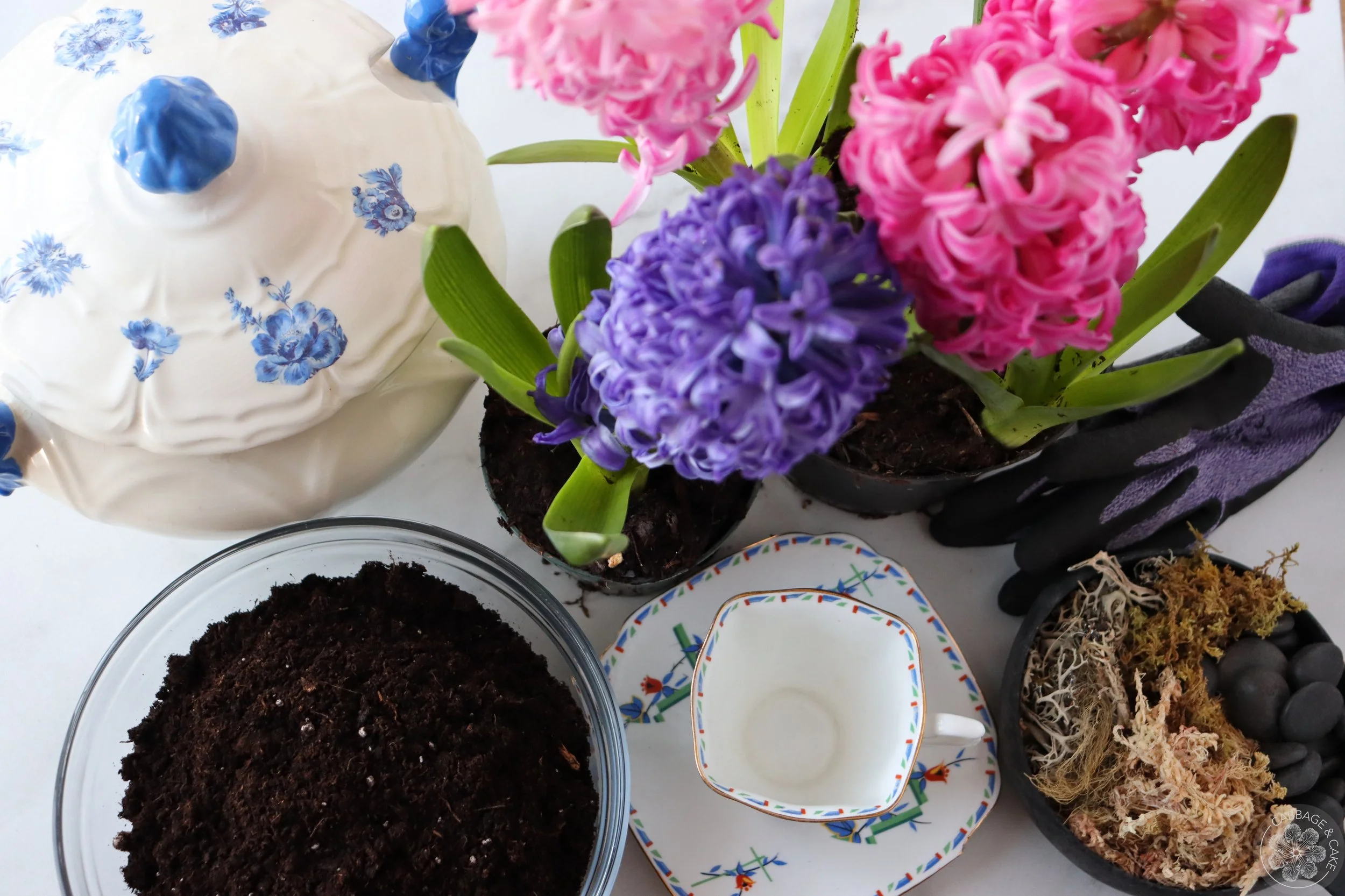 In this blogpost I will show you how to display some beautiful hyacinths into repurposed dishes I found at the thrift store. Whenever I have a bit of time to spare, I love going to my local antique and thrift stores. There’s something really exciting about it, and you never know, if you will find a great piece.