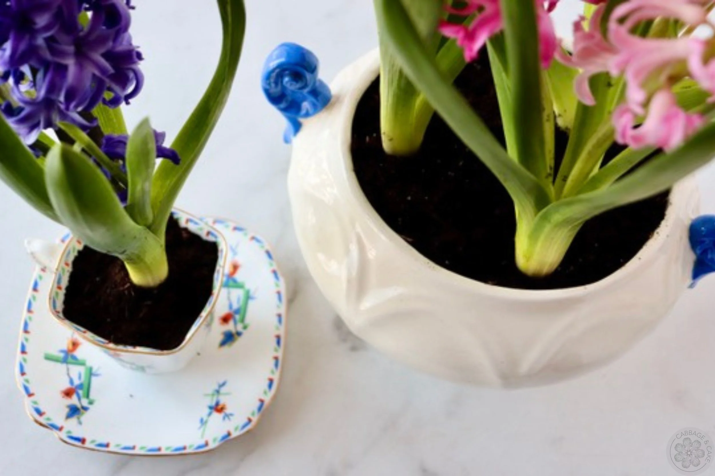 Hyacinths are stunning, bold coloured spring flowers with a strong scent that will lift your spirits and bring a feeling of spring into your space! Turn someone’s junk into your own treasure by repurposing some thrifted dishes to use as planters for these beautiful plants.