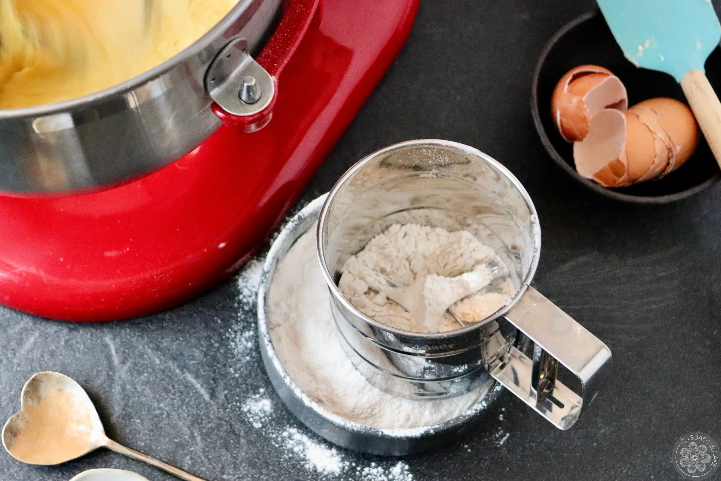 Sift the flour and don’t skip this step! You don’t want to get any dense floury spots in your cake.