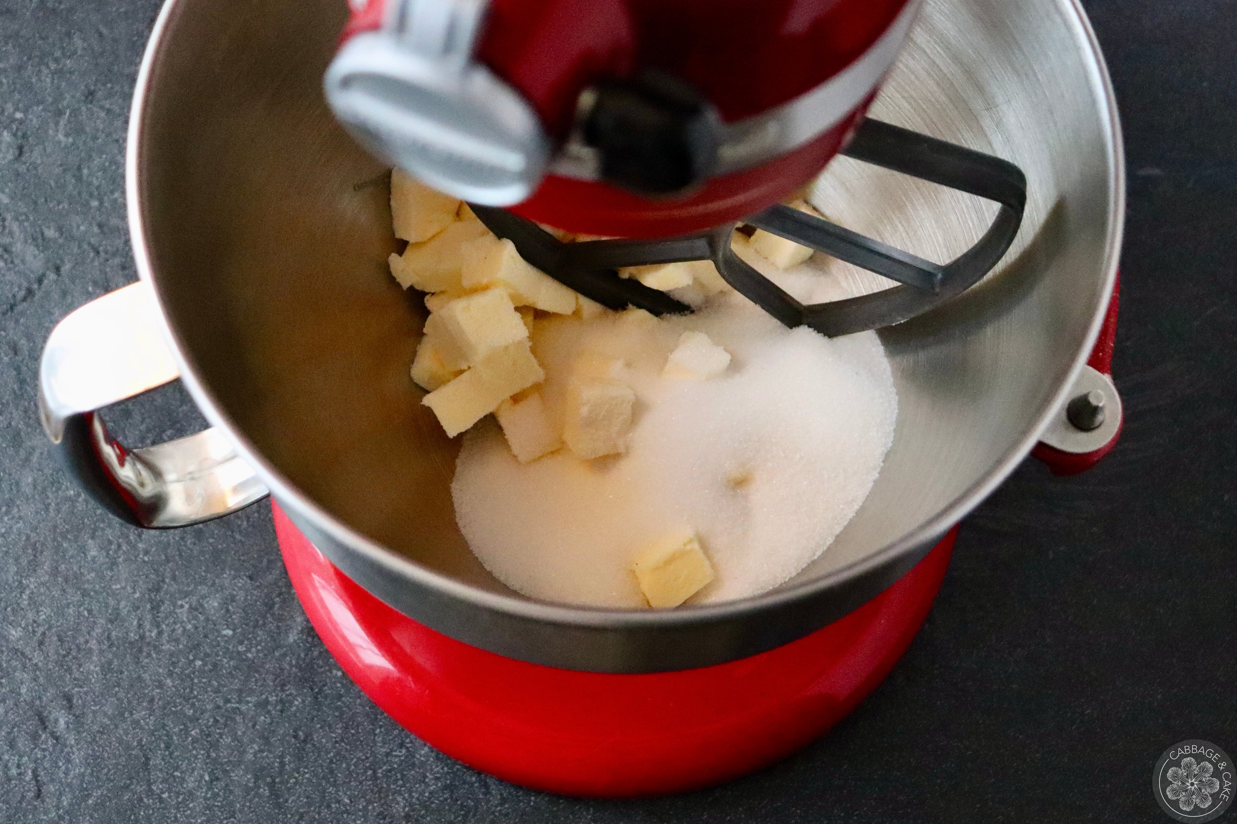 In the bowl of a stand mixer fitted with the paddle attachment or with a hand mixer, add butter and sugar and cream until light and fluffy approximately 4- 5 minutes on medium speed. If you use a stand mixer, make sure to scrape down the sides halfway in between.