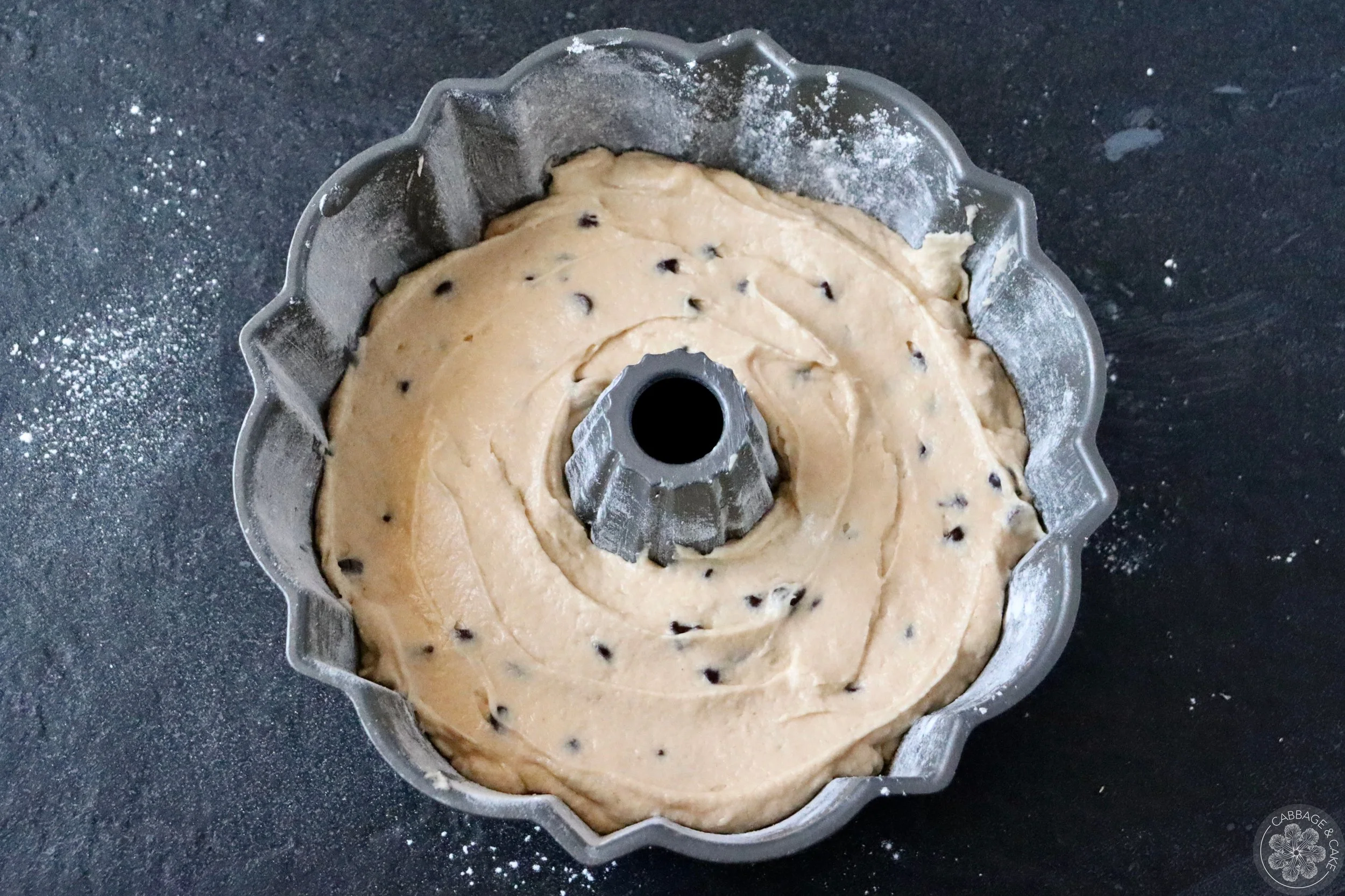 Transfer the dough into your bundt cake pan and smooth the top with a spatula.
