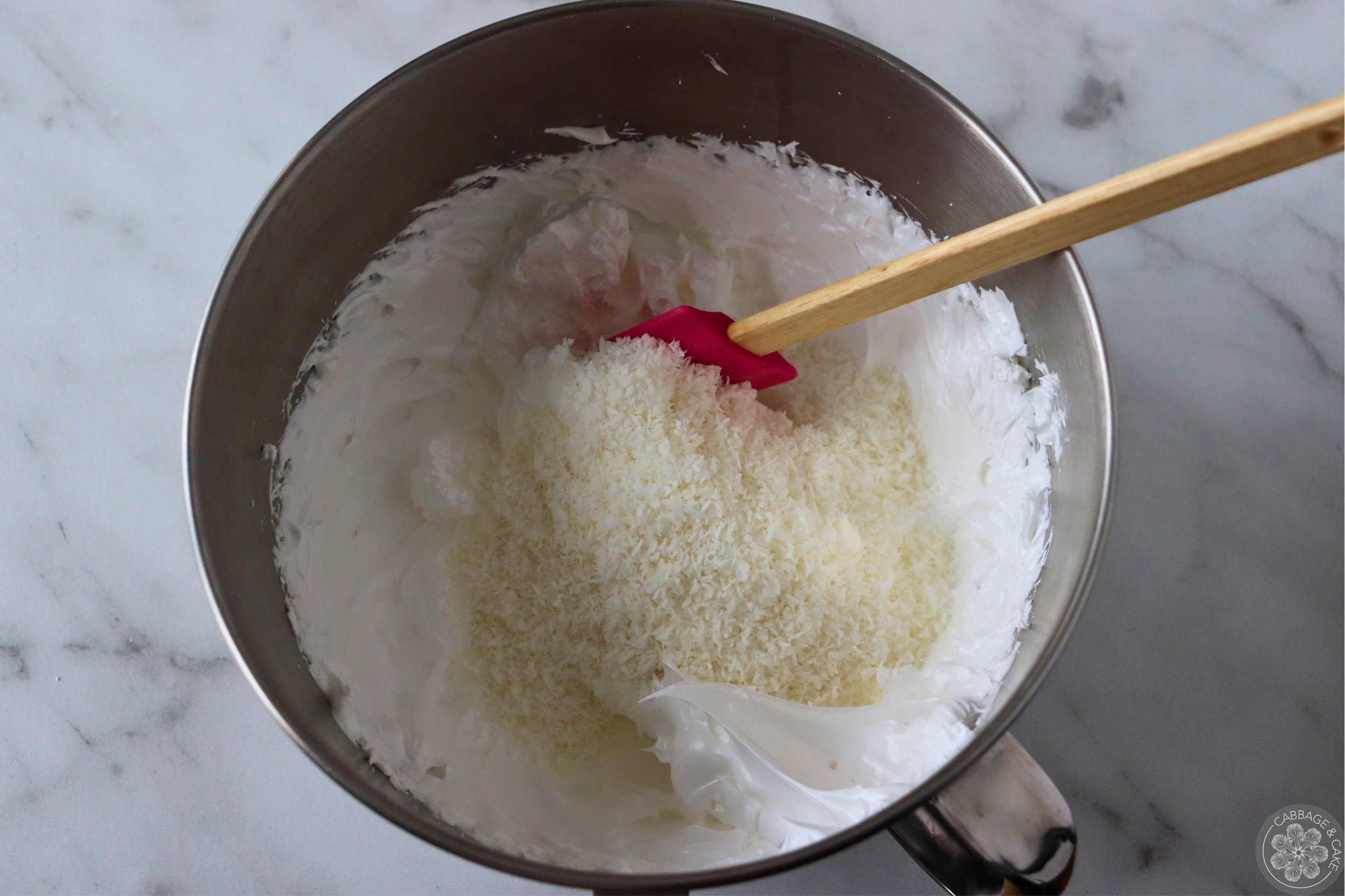 Gently fold in the shredded coconut with a rubber spatula until nicely combined.