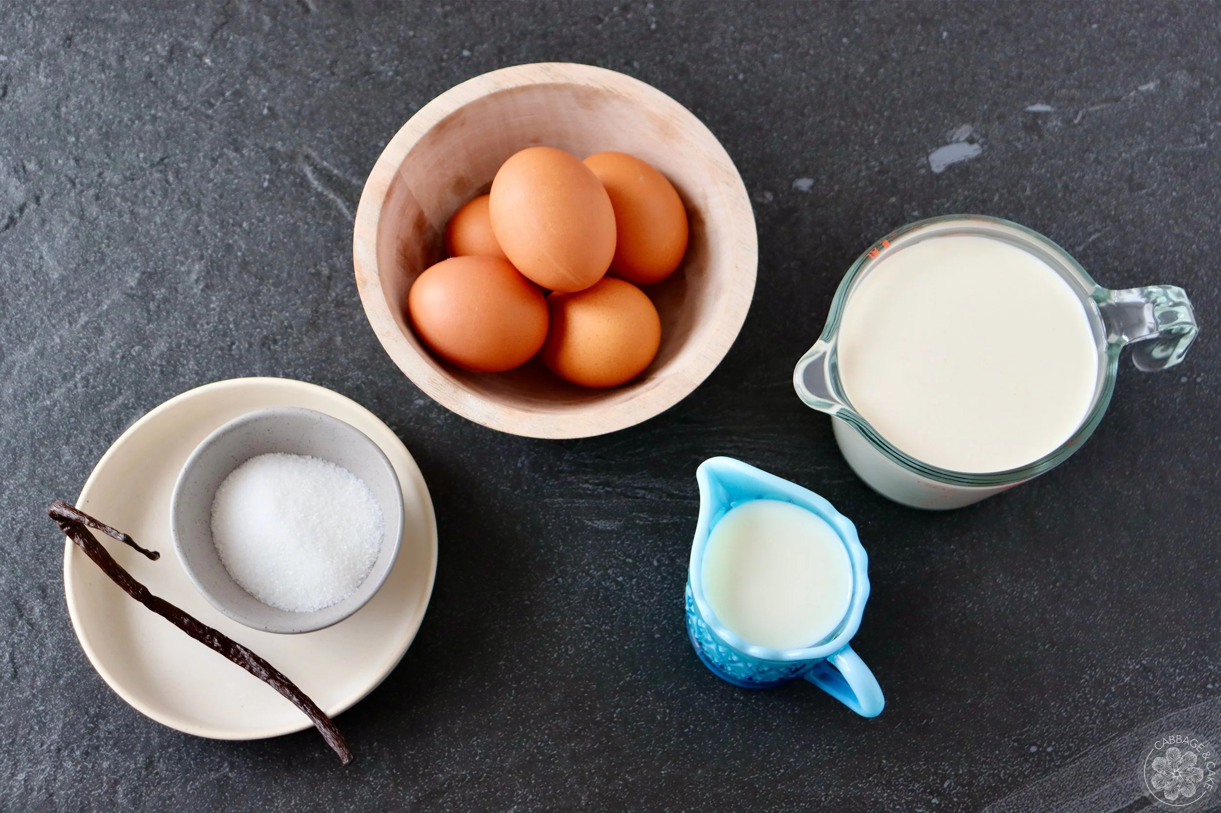Whipping cream - make sure to use 35% cream for a rich and silky crème brûlée base.