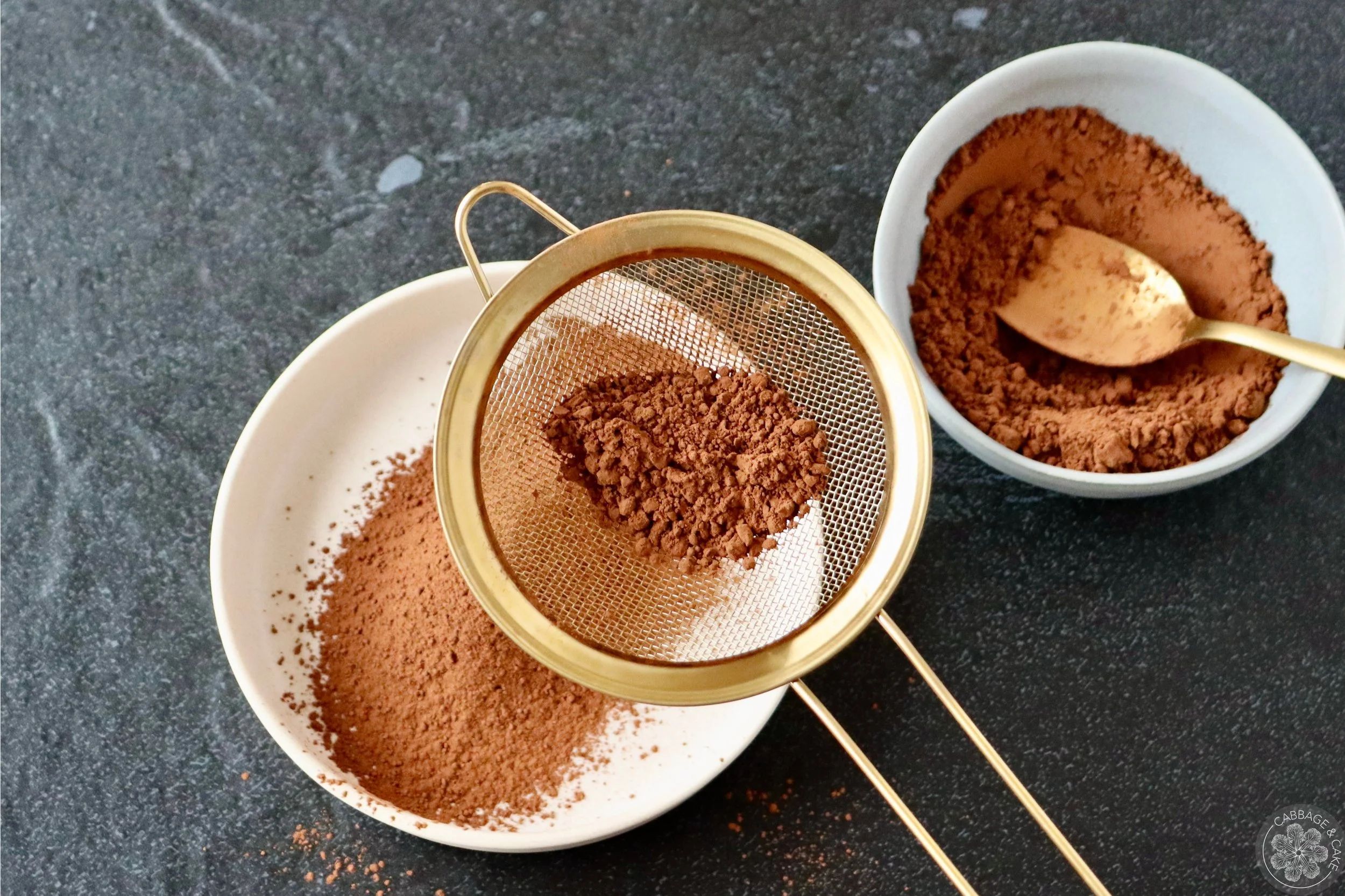 Sift your cacao powder through a fine mesh sifter into a shallow bowl or plate.