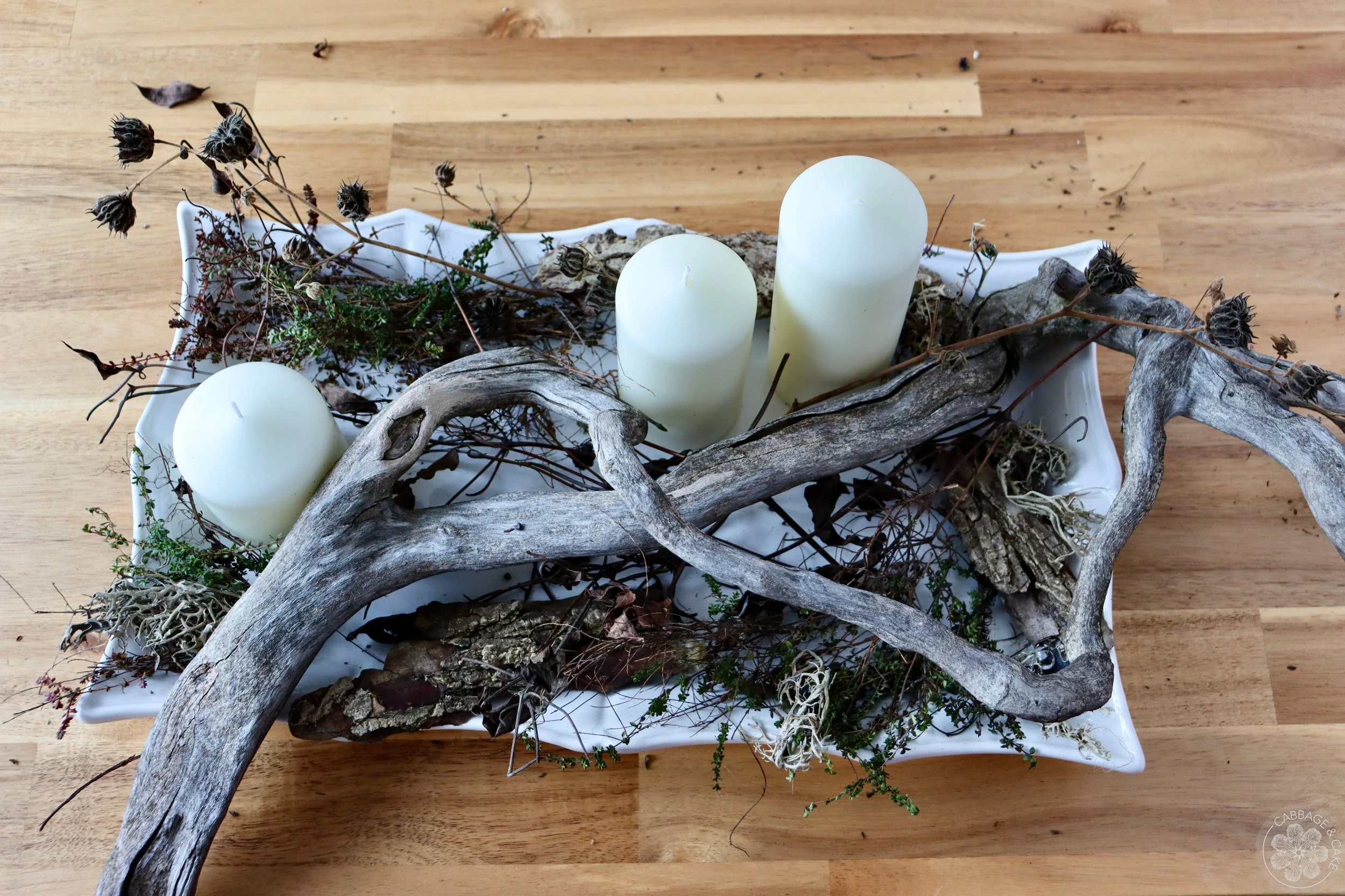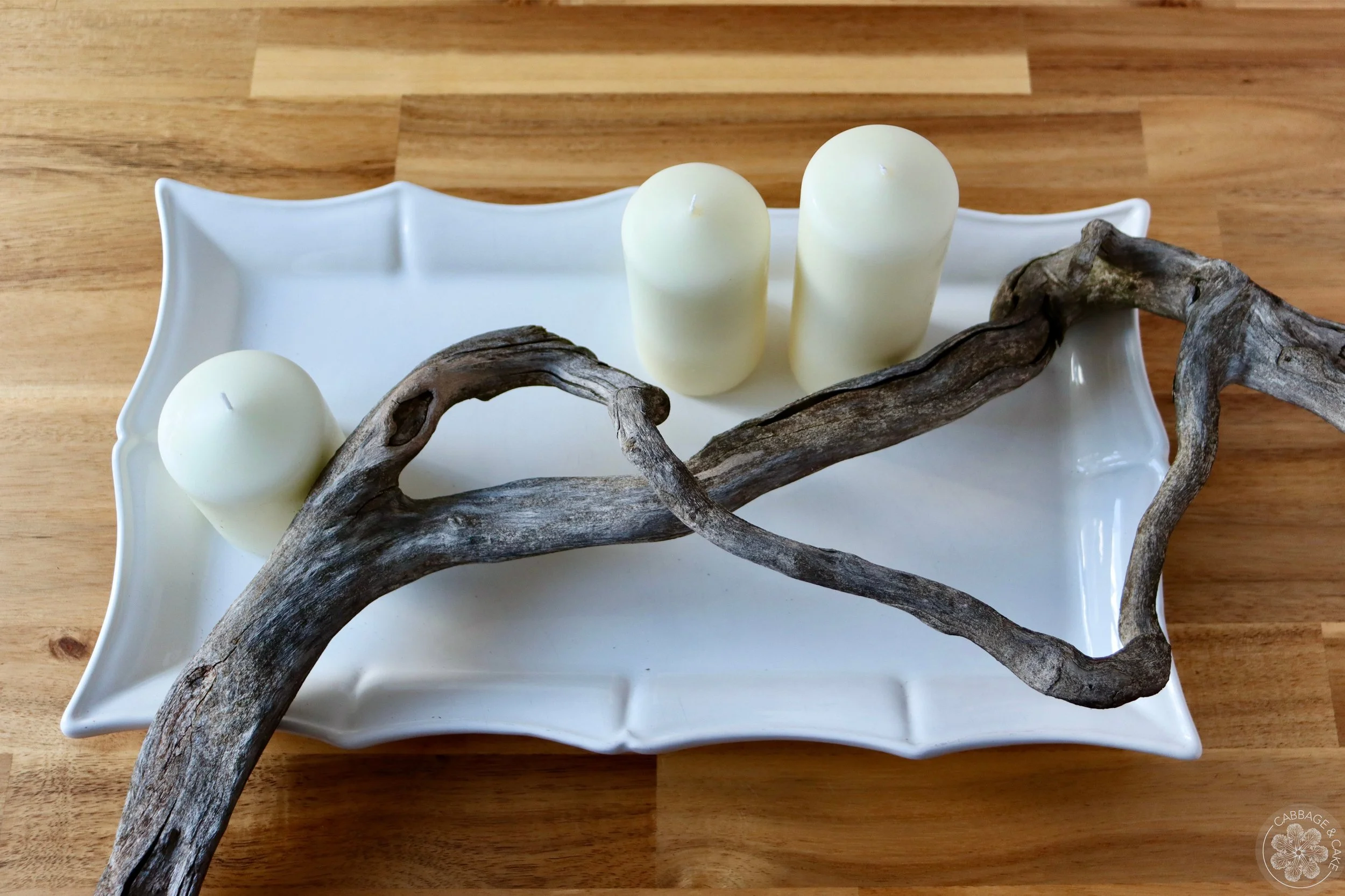 Place your platter in front of you and add big pieces of driftwood and candles.
