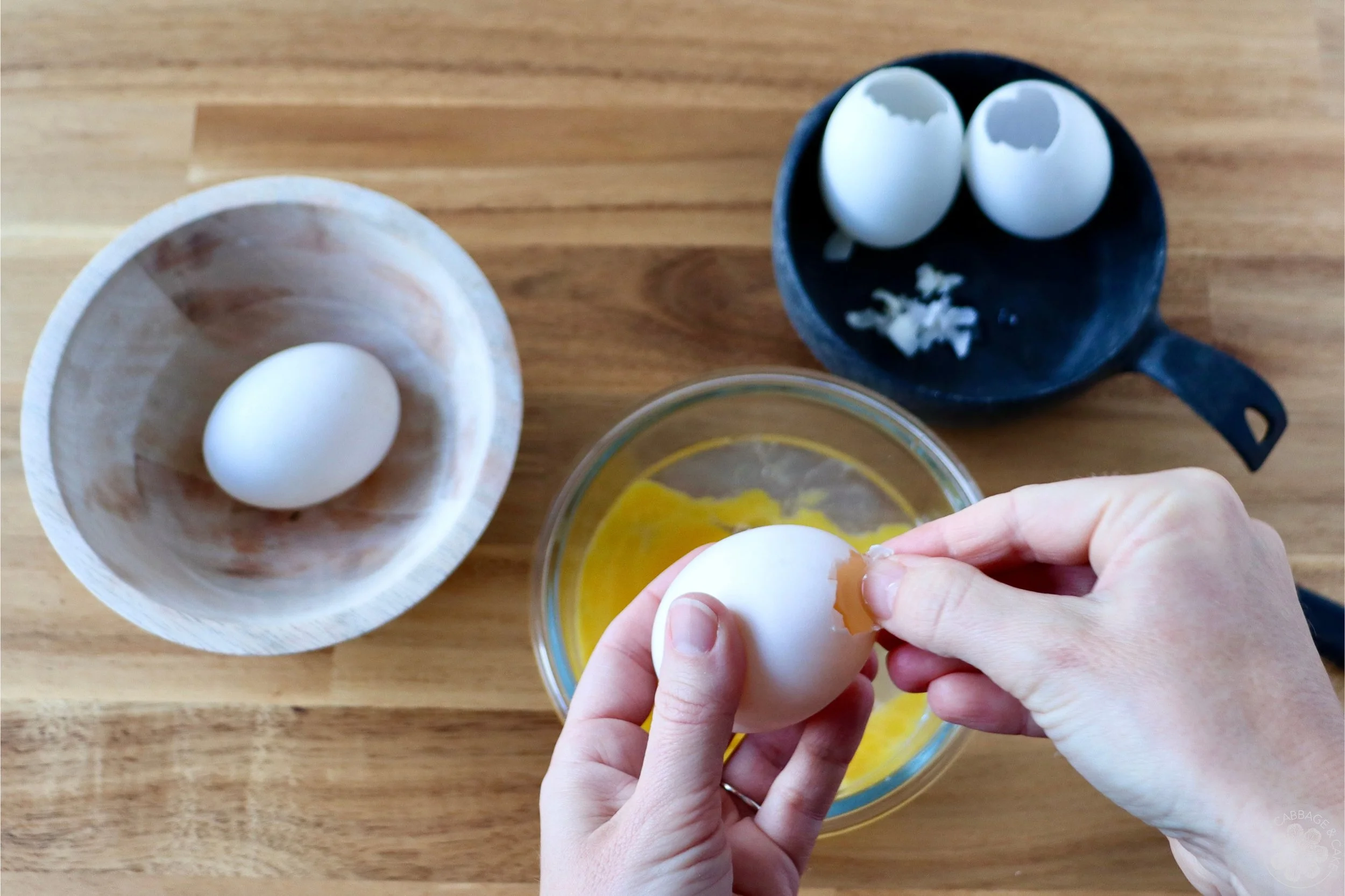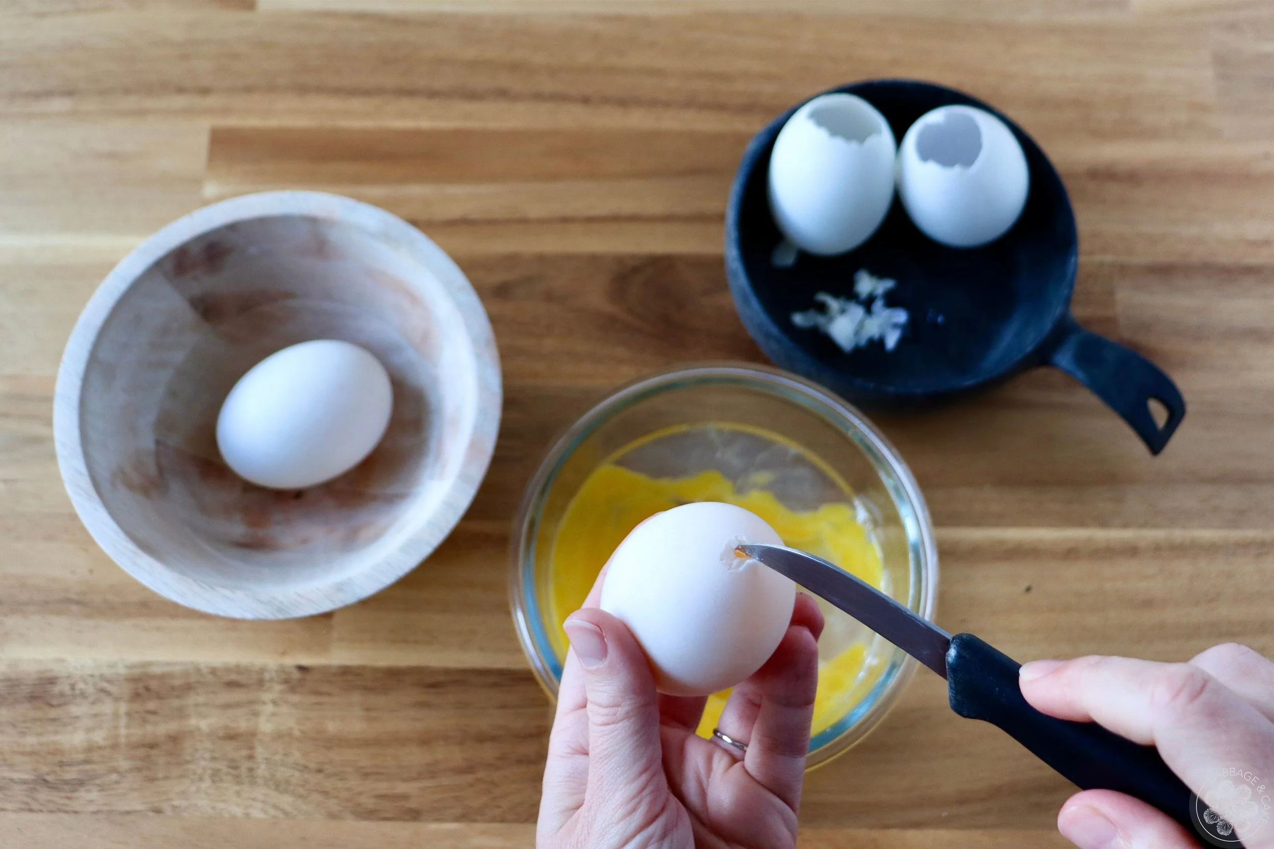 Gently break off some of the shells and pour out the eggs into a bowl.