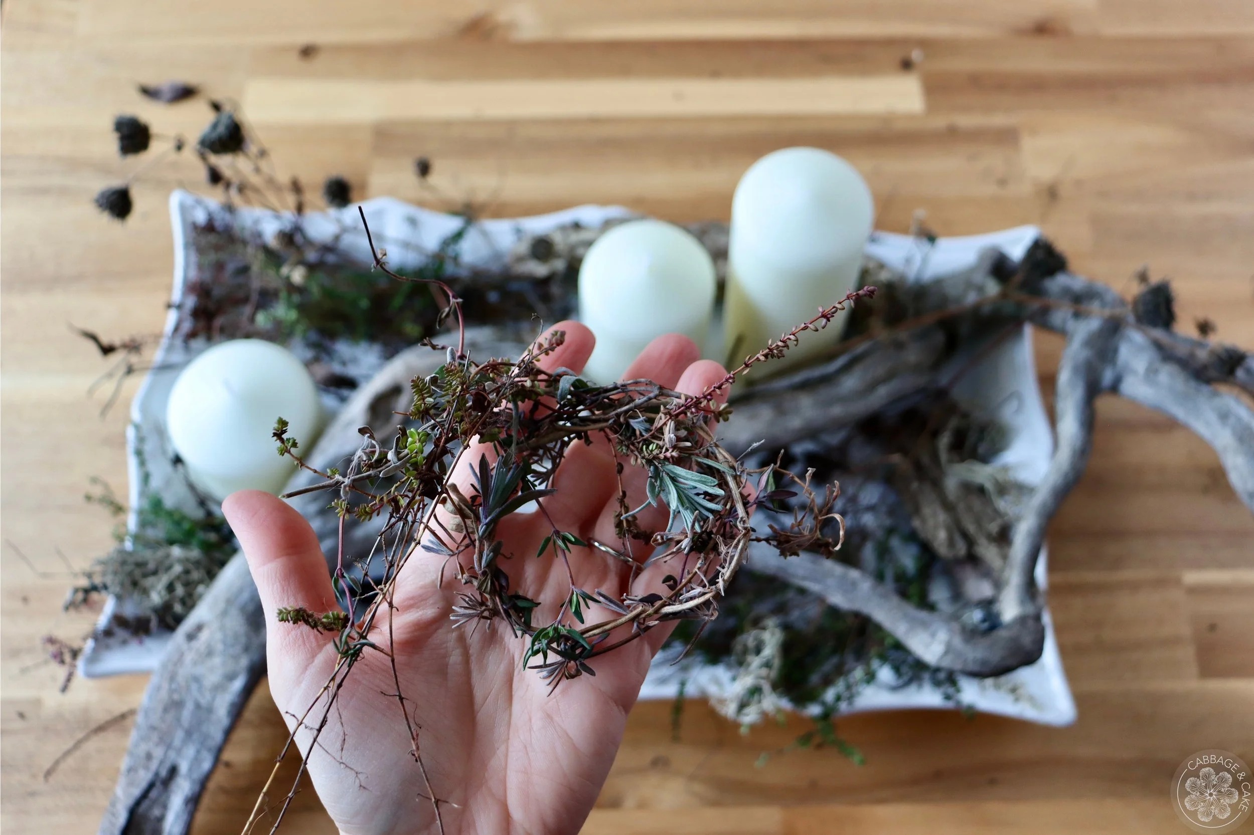 Add some seed pods, small branches, twigs, moss and pieces of bark to cover your platter.