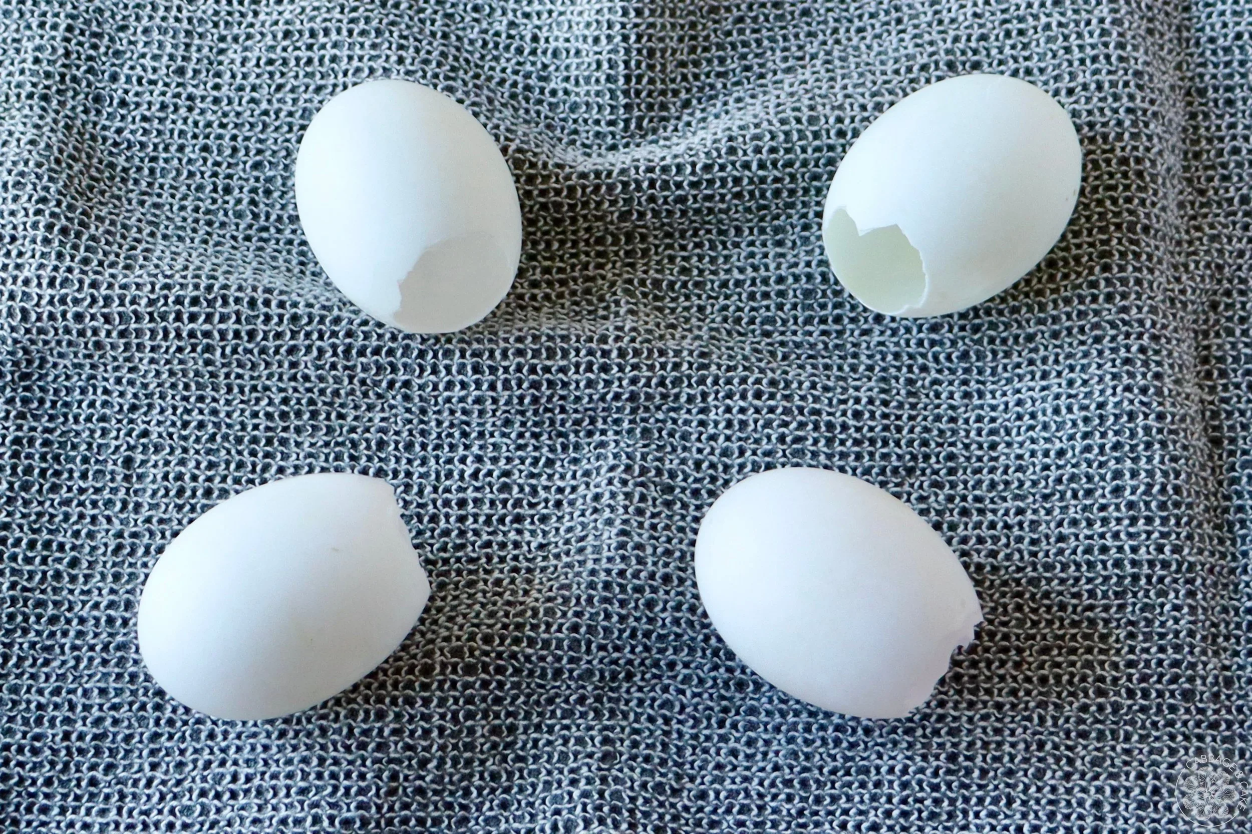 Wash the egg shells thoroughly and set them on a dish towel to dry completely.