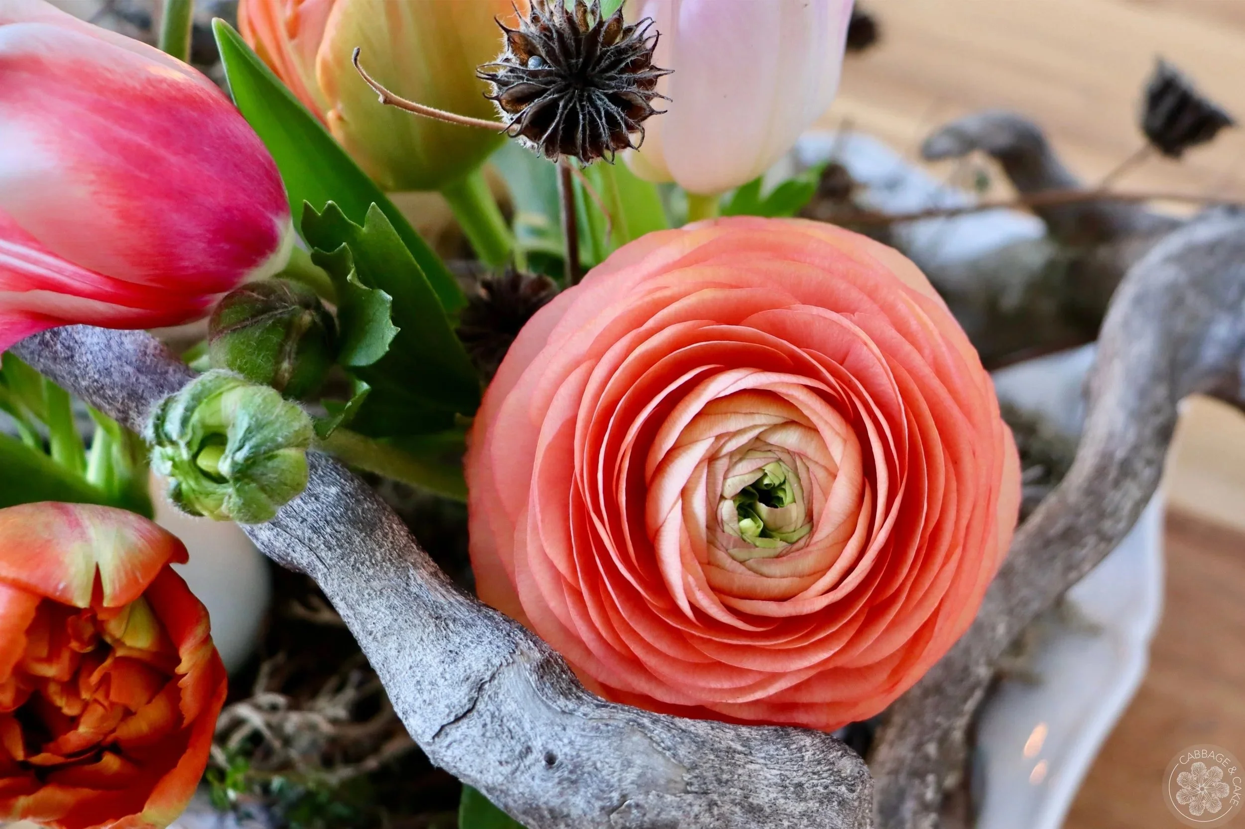I love all flowers but the delicate ranunculus with their unique paper-thin petal texture and the special way they are laid out concentrically have always been one of my favourites. They come in an array of vibrant colours and, similar to tulips, they will last a long time in an arrangement, as long as you keep the water fresh.