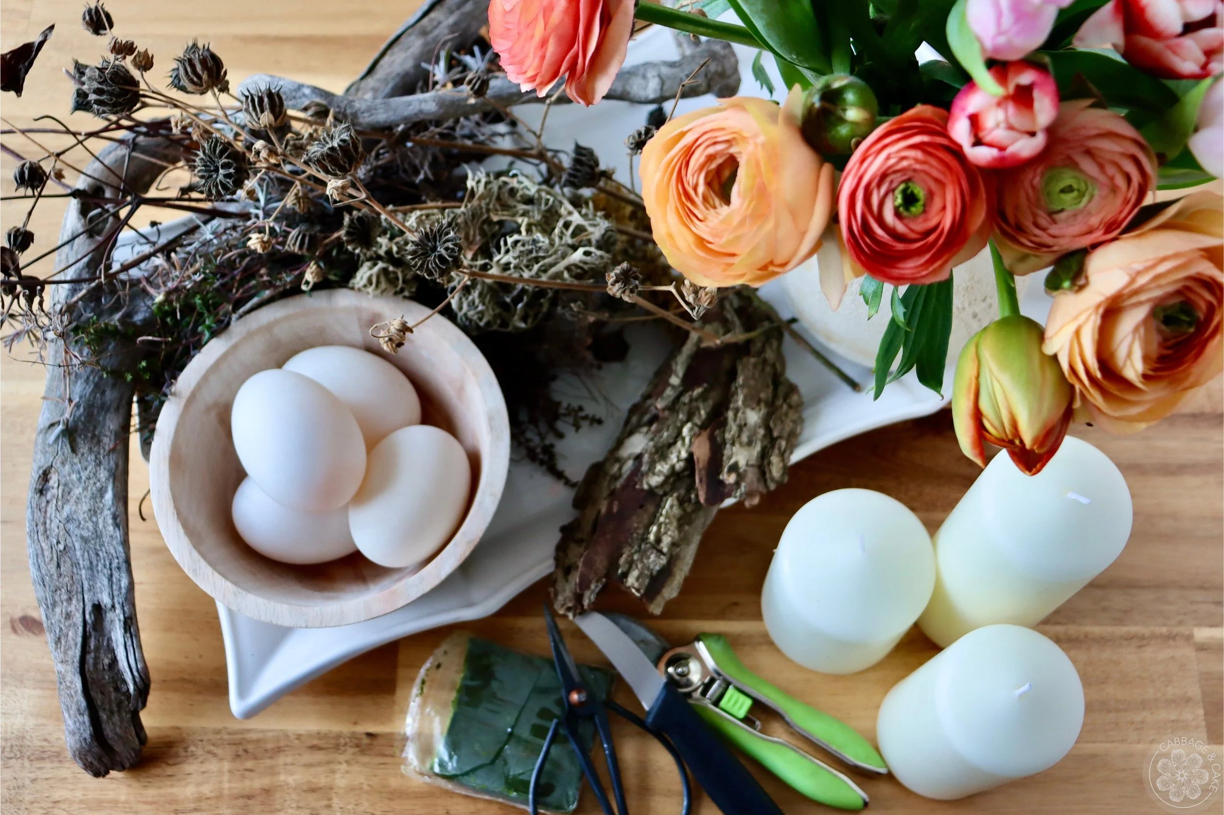 DIY EASTER CENTREPIECE WITH DUCK EGGS AND RANUNCULUS