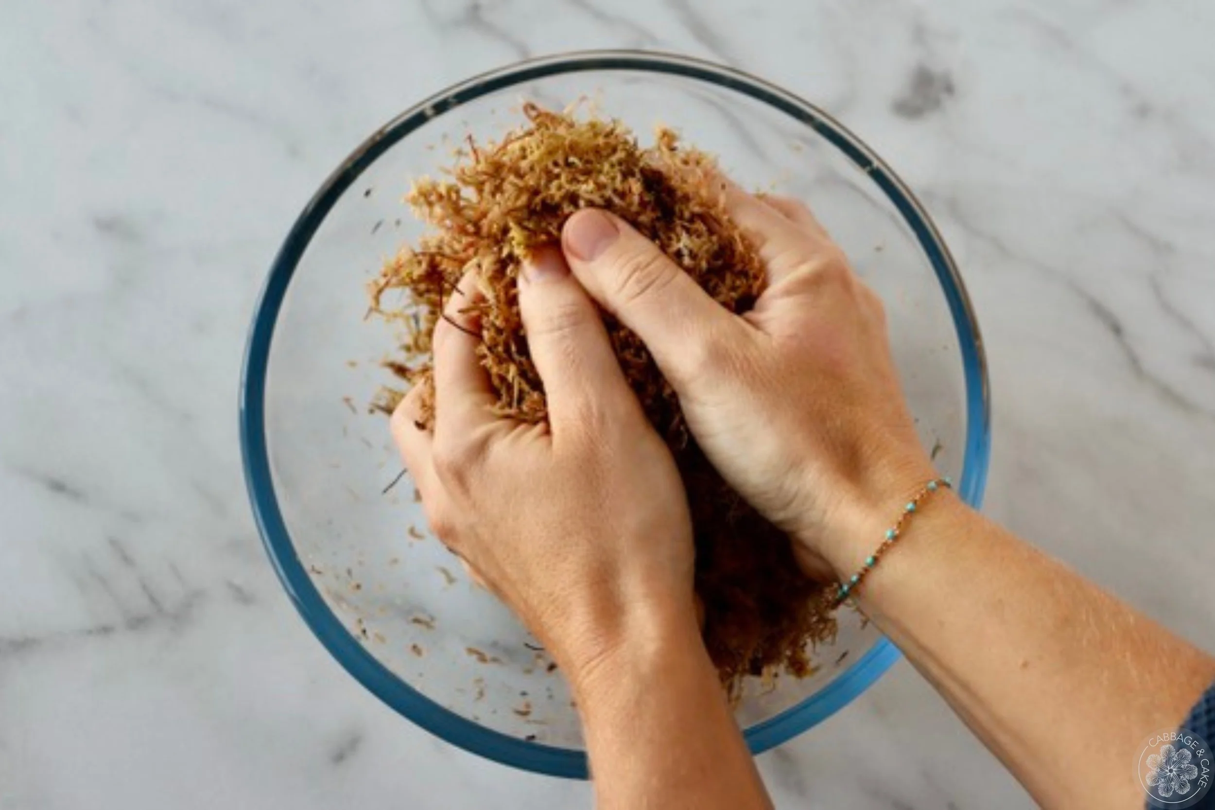 Pour out the soaking water from your moss and press it together with your hands to release any excess water.
