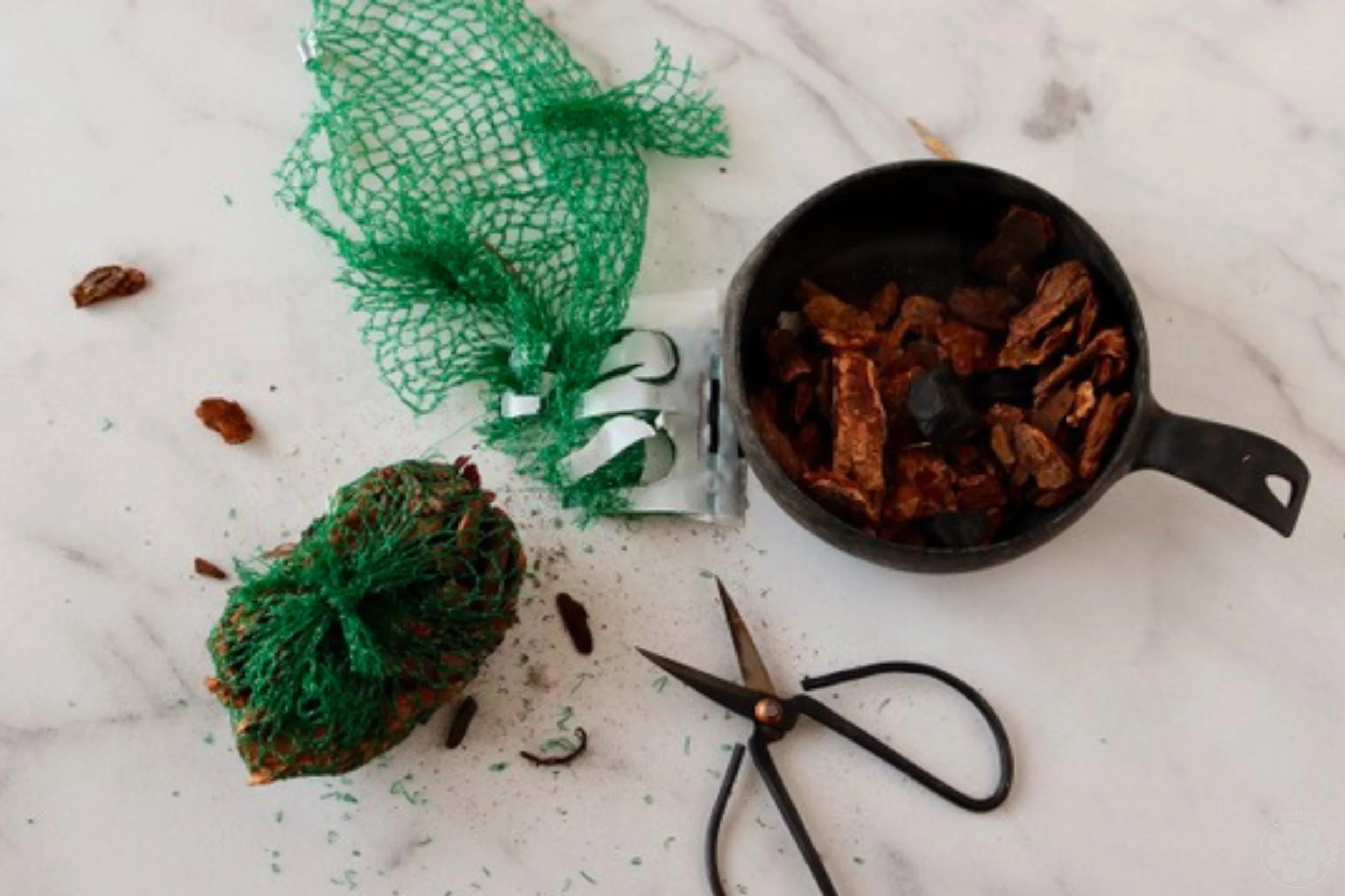 When you are done wrapping, knot the twine off and push it into the moss ball with closed scissors.