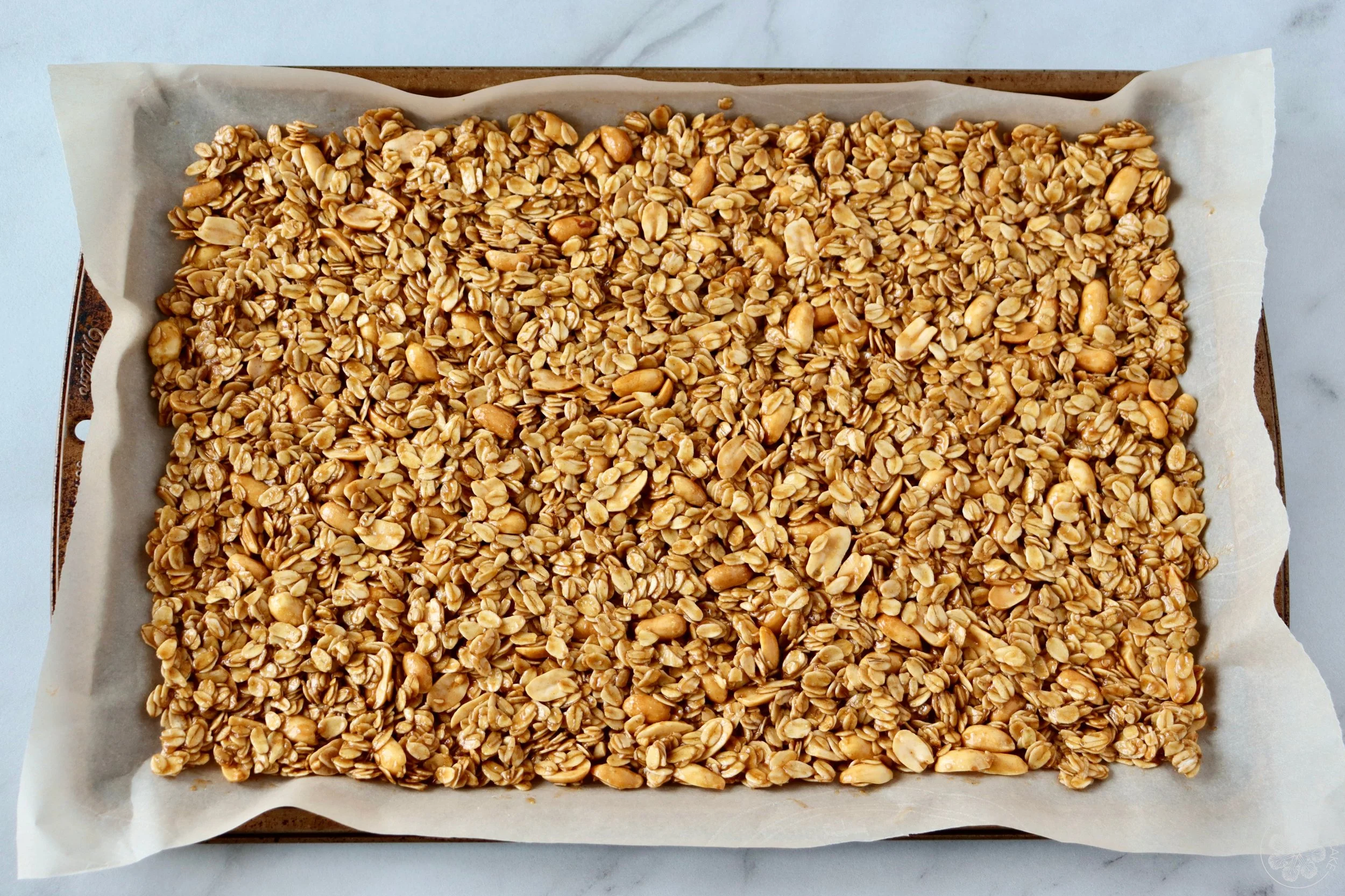 Press your granola firmly onto the baking sheet for extra crunchy pieces.