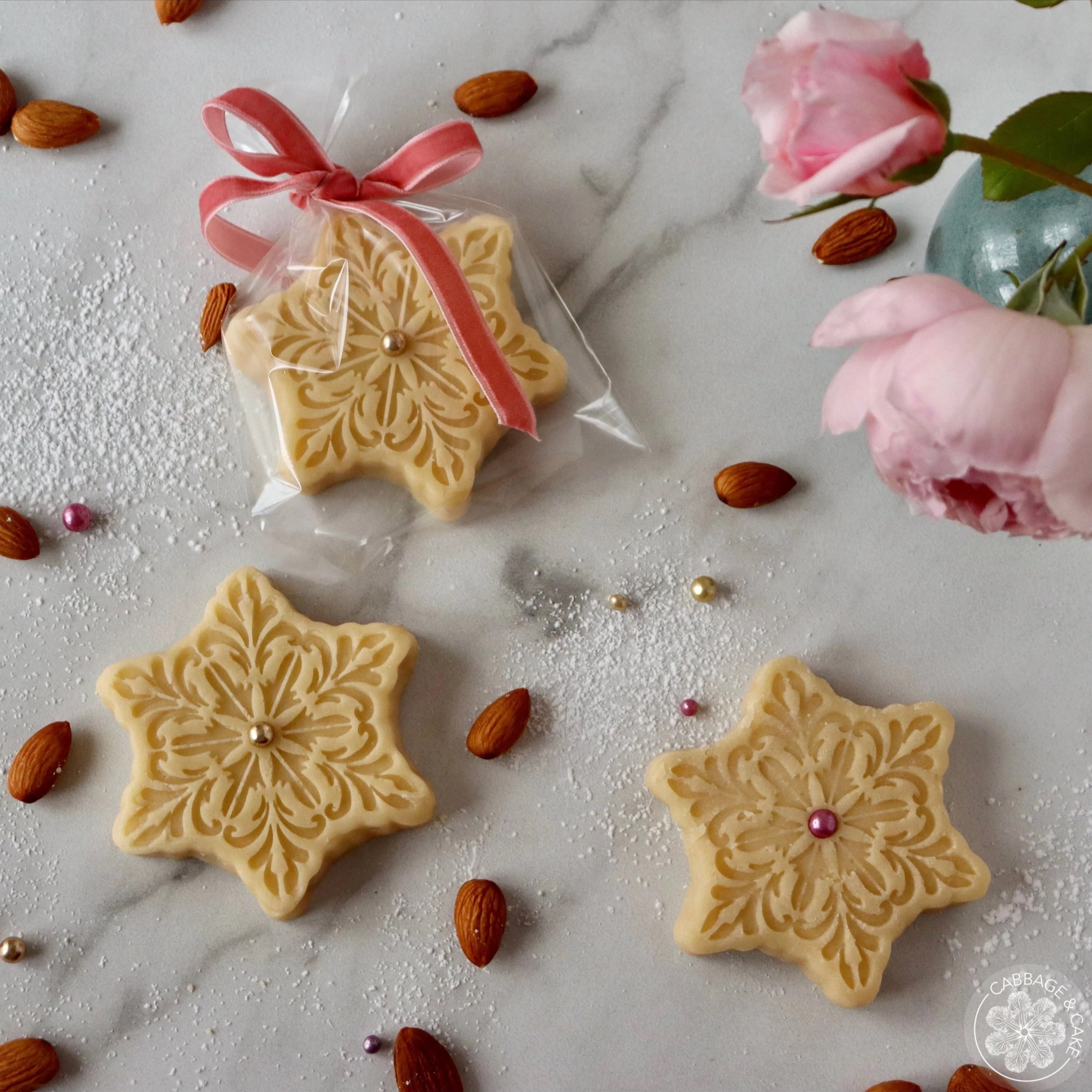 Marzipan is a soft paste made from finely ground almonds, icing sugar, rosewater and sometimes almond extract, and it is absolutely delicious!