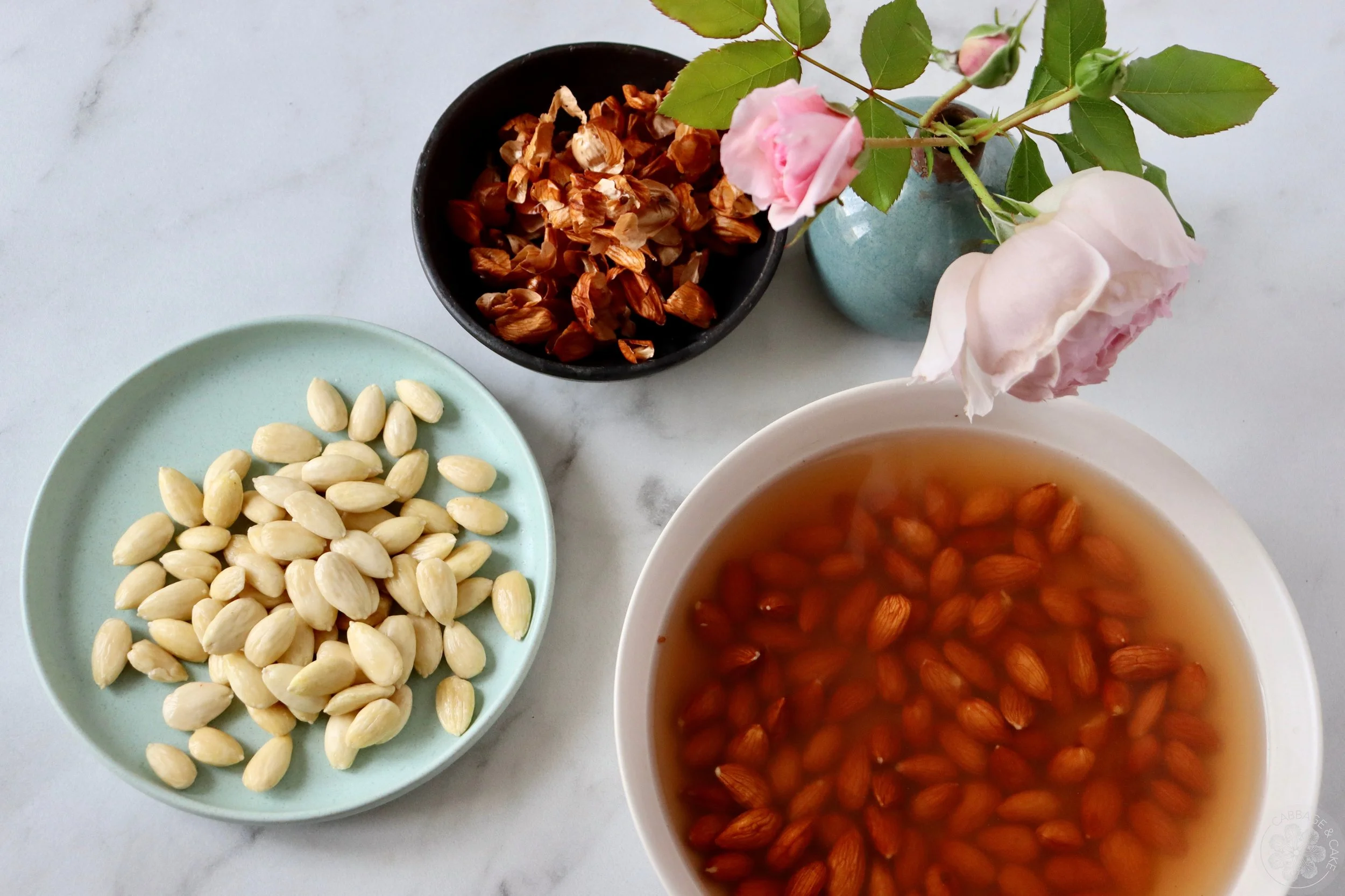 Make sure to get food grade rosewater and real almond extract instead of imitation for best flavour.