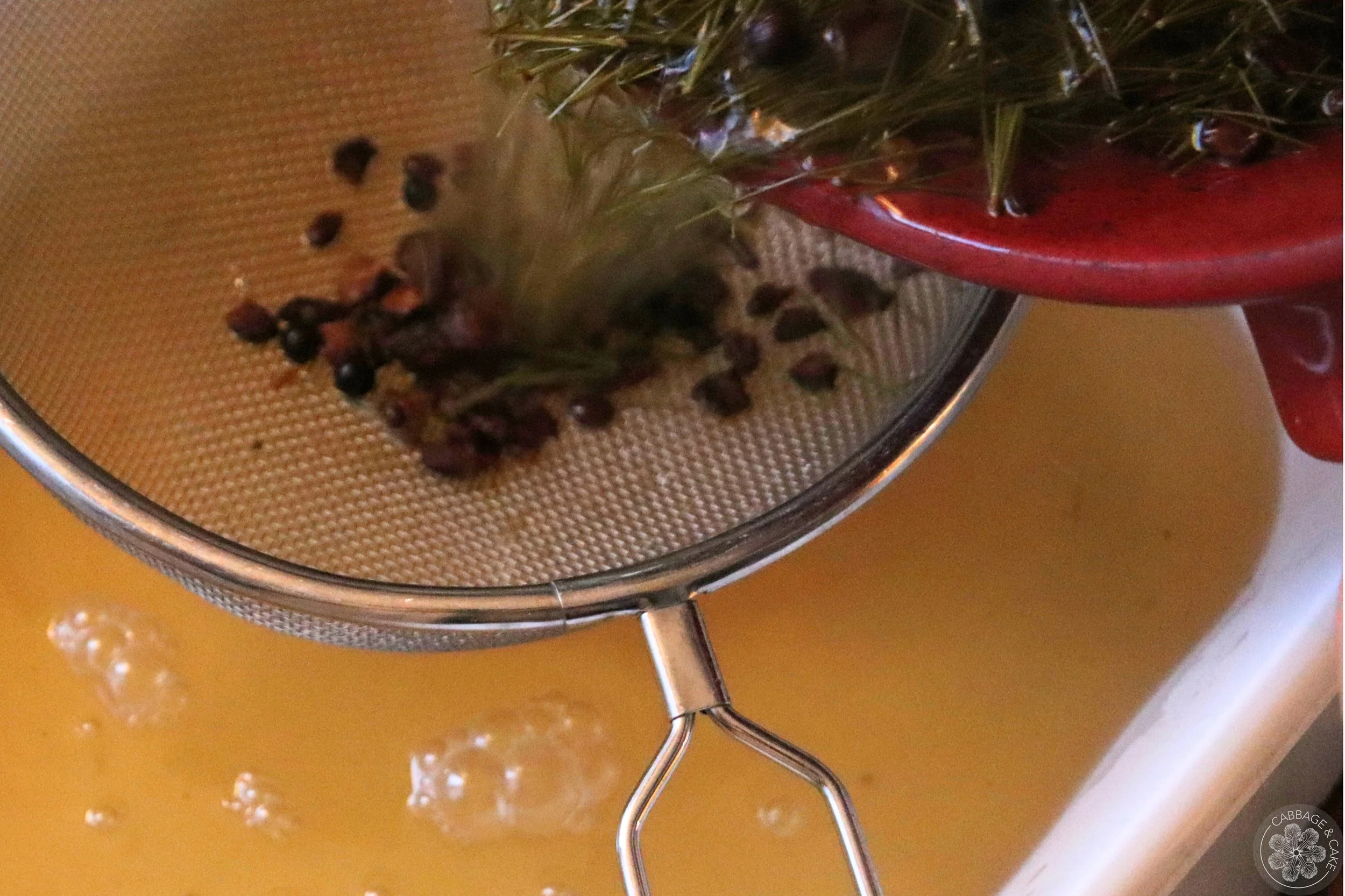 Strain the pine needle brew through a fine mesh sieve into your foot bath.
