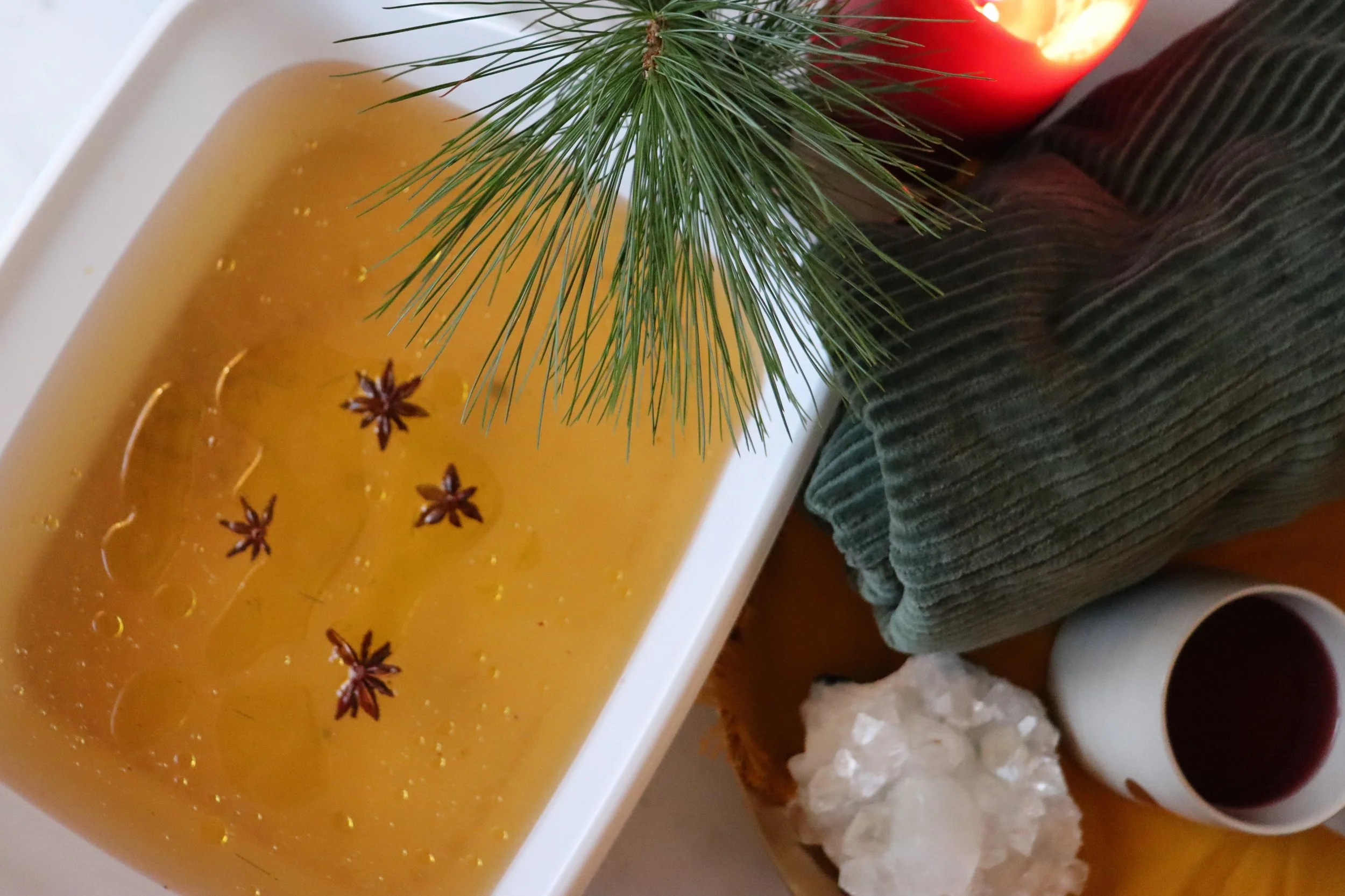 This easy pine needle foot soak will relax your muscles and sooth your tired feet. Juniper berries, cloves and star anise add an amazing aroma, give this foot bath additional antibacterial and antiseptic properties, boost skin health, and can help with circulation. Added olive oil will moisturize your skin beautifully and the essential oils provide an extra magical scent to make this foot soak an even more relaxing experience for all your senses.