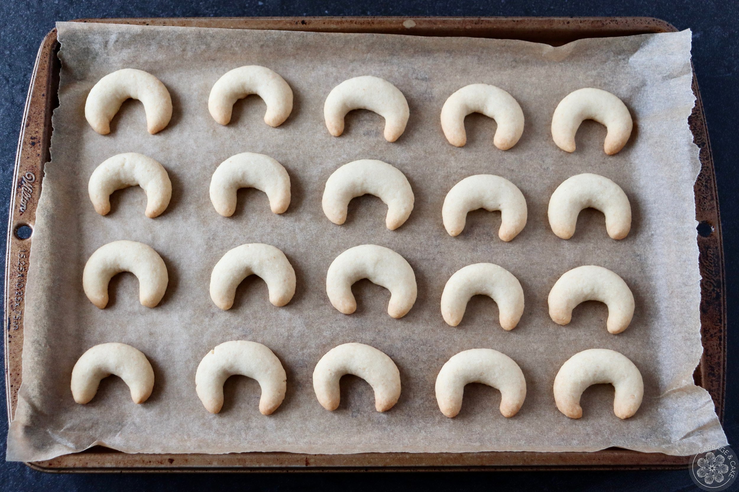 Place Vanillekipferl 1 inch apart on your baking sheet and bake for 12-15 minutes until they are light golden brown in colour and smell delicious.